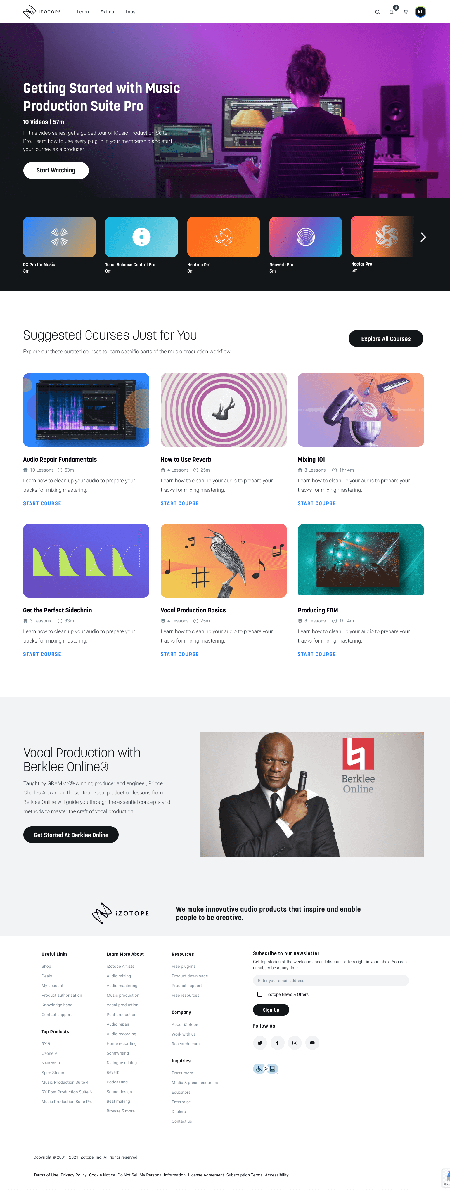 As part of the onboarding & activation team at iZotope, I spent a lot of time working on one their subscription products, Music Production Suite Pro--and more specifically, how to retain and engage musicians and engineers. My work included designing in product messaging popups, a hub on the website for subscribers, as well as all of the usual promotional assets.