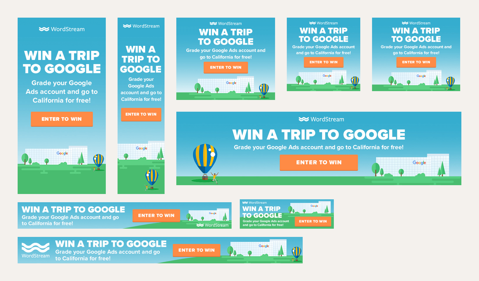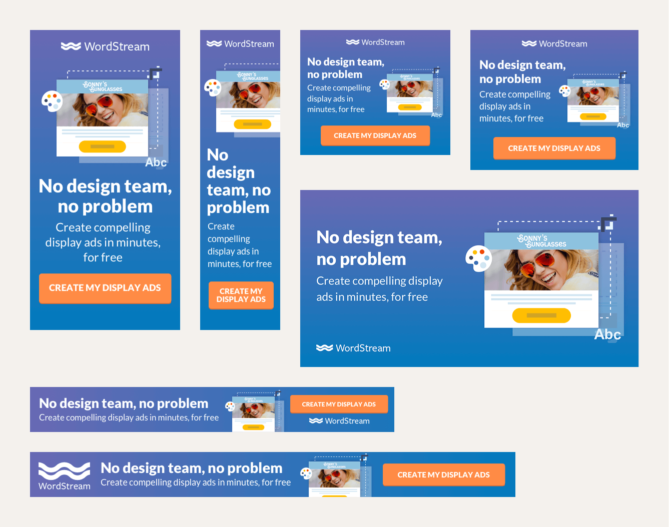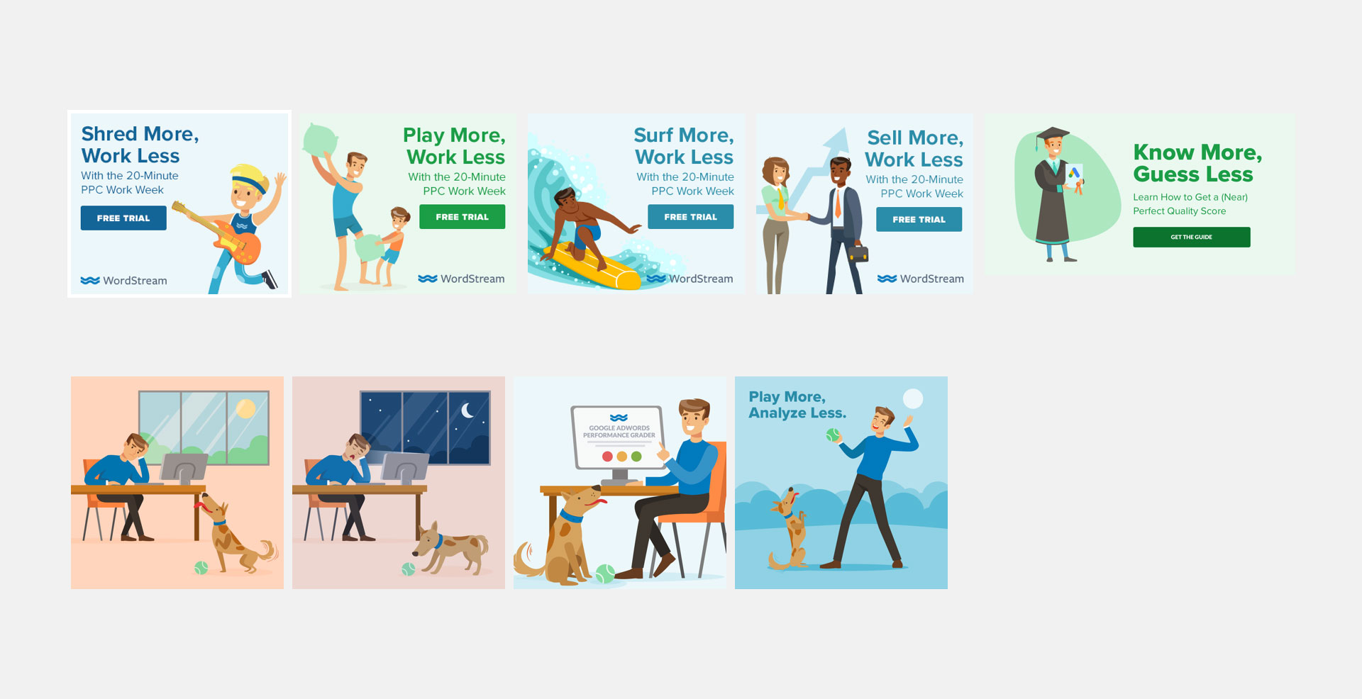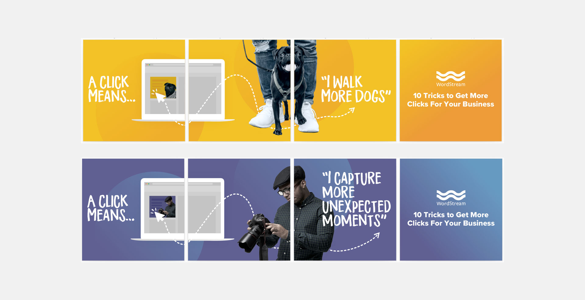I helped conceptualize and built the assets for many campaigns at WordStream. This involved producing assets for Google Ads, Bing, Facebook & other social platforms in both static and animated formats, and working with the marketing team to produce several variations for A/B testing.