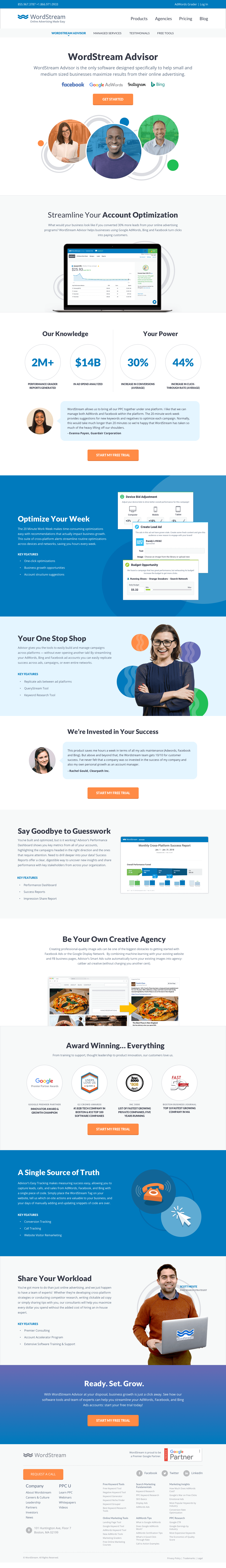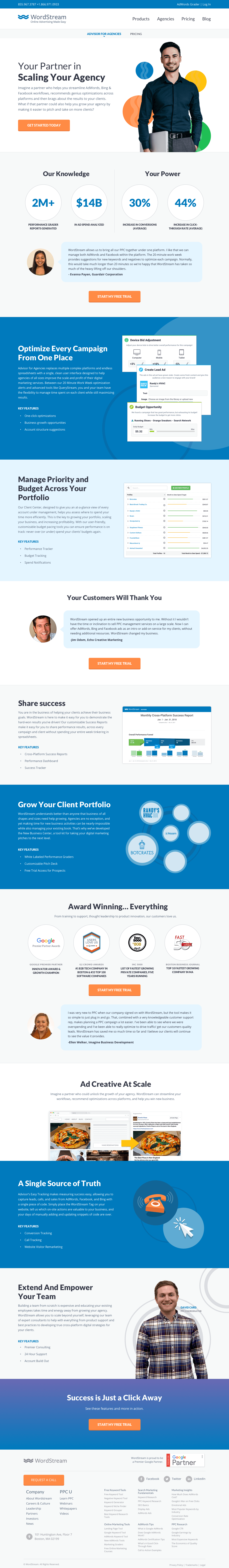 I worked on the redesigns for the WordStream homepage and pricing pages, as well as several other feature pages on the website. These were designed by me and then delivered to our development team to build in Drupal.
