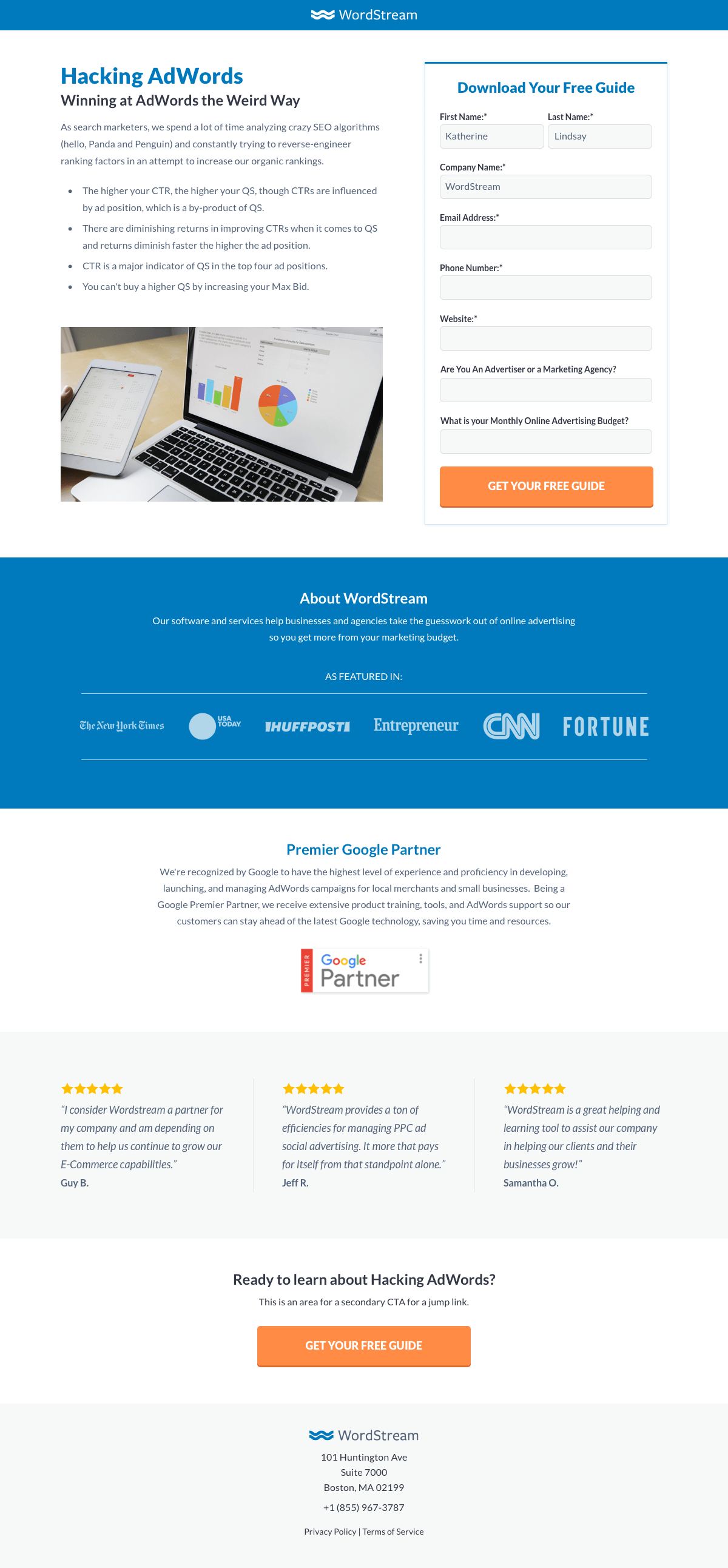 As the design team leader at WordStream, I lead the redesign of several pages, plus the designs for new pages on both our website and our Marketo instance.